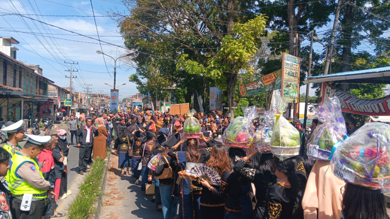 Peserta karnaval, 15 kecamatan, Organisasi Perangkat Daerah (OPD), sejumlah sekolah, BUMD dan Kementerian Agama, berjalan kaki ke Gednas Djauli Manik, membawa luah (oleh-oleh) masing-masing.